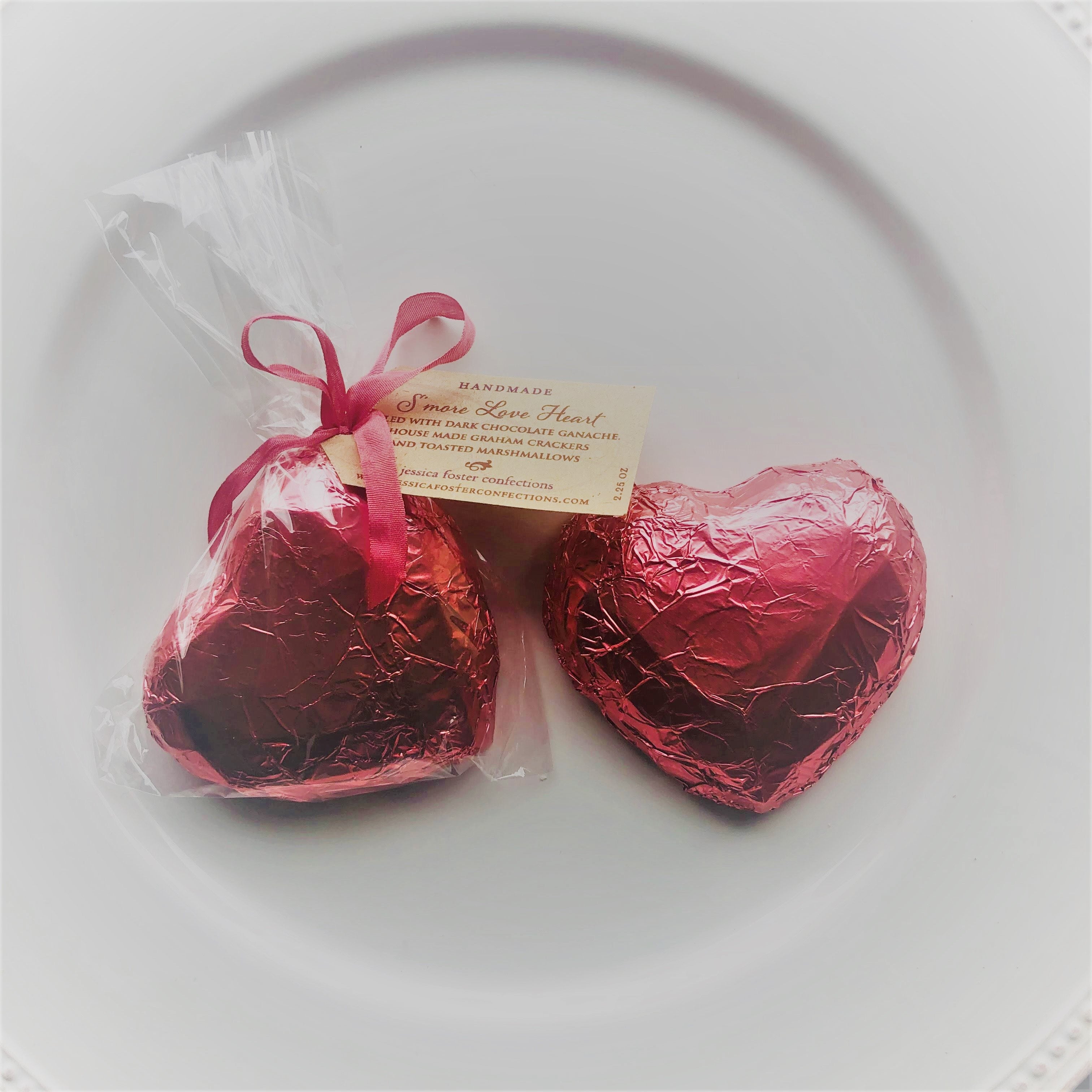 Faceted dark chocolate heart filled with dark chocolate ganache, house made graham crackers & toasted marshmallow (2.5oz)